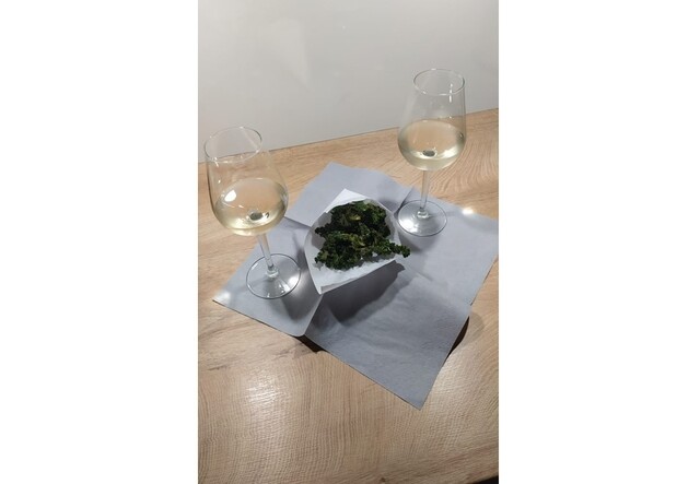 Heize den Ofen auf 150 °C Umluft vor. Trenne die Grünkohlblätter vom Stiel und wasche diese gut. Abschließend trockenschleudern.(Bei Bedarf nochmal mit einem Küchentuch abtupfen). Schneide die Grünkohlblätter nun in ca. 3 cm große Stücke. Gib sie mit Olivenöl, Salz, Chili und Sesam in eine Schüssel, vermenge alles gut miteinander, sodass der Grünkohl schön mariniert ist. Verteile die kleinen Grünkohlblätter auf zwei mit Backpapier ausgelegten Blechen. Die Grünkohlblätter sollten sich nicht berühren Beide Bleche in den Ofen und die Ofentür mit einem Holzlöffel einen Spalt offenlassen, damit eventuelle Feuchtigkeit entweichen kann und die Chips richtig knusprig werden! Nach etwa 8 Minuten die Chips wenden und das obere Blech mit dem unteren tauschen. Nach weiteren 7 Minuten sind die Chips fertig. Abkühlen lassen und knabbern!