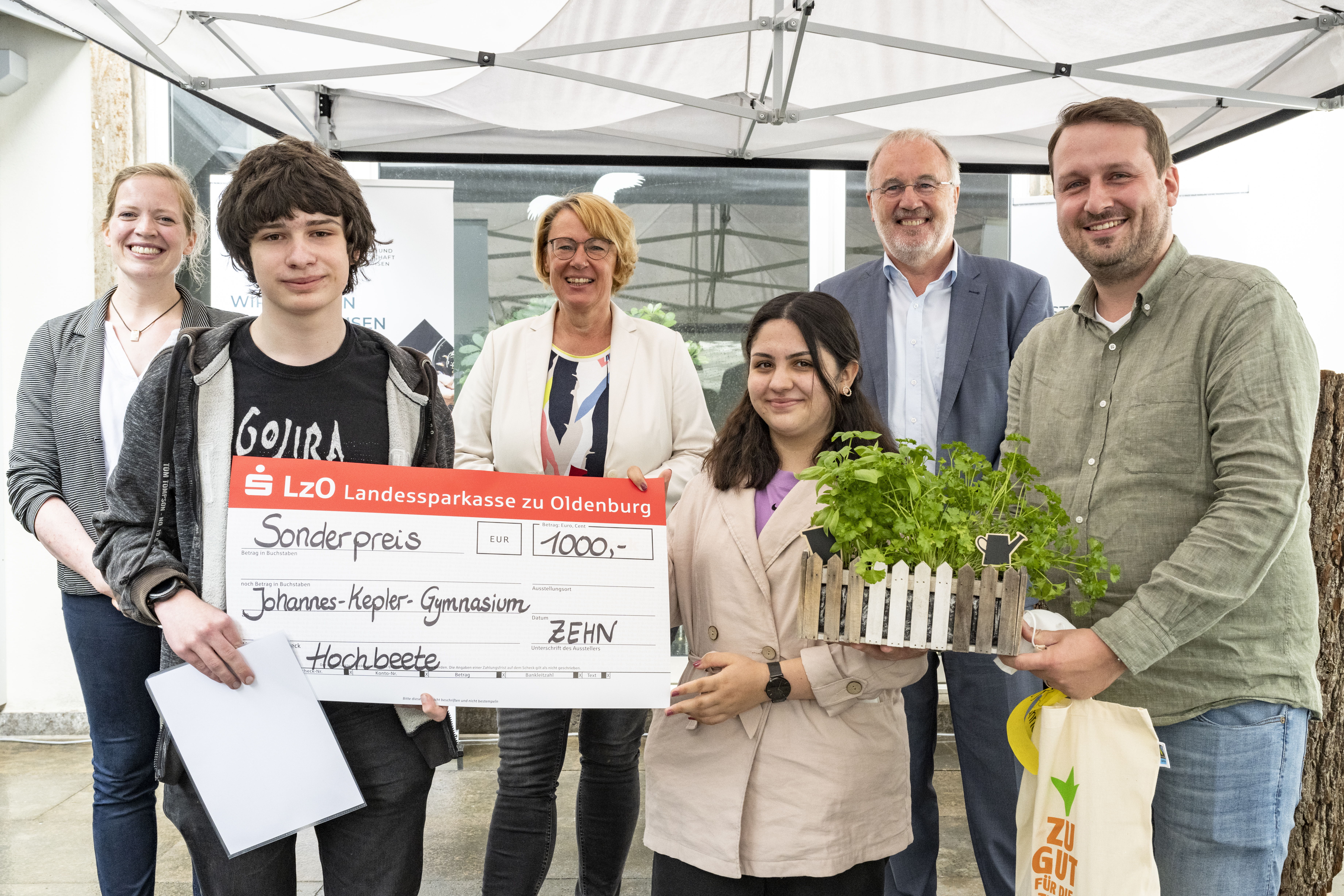 - Klasse 9, Werte und Normen des Johannes-Kepler-Gymnasiums aus Garbsen - Verwendung des Preisgelds für Hochbeete im Dachgarten auf der Terasse des Schulgebäudes zur Selbstversorgung der schuleigenen Lernküche.