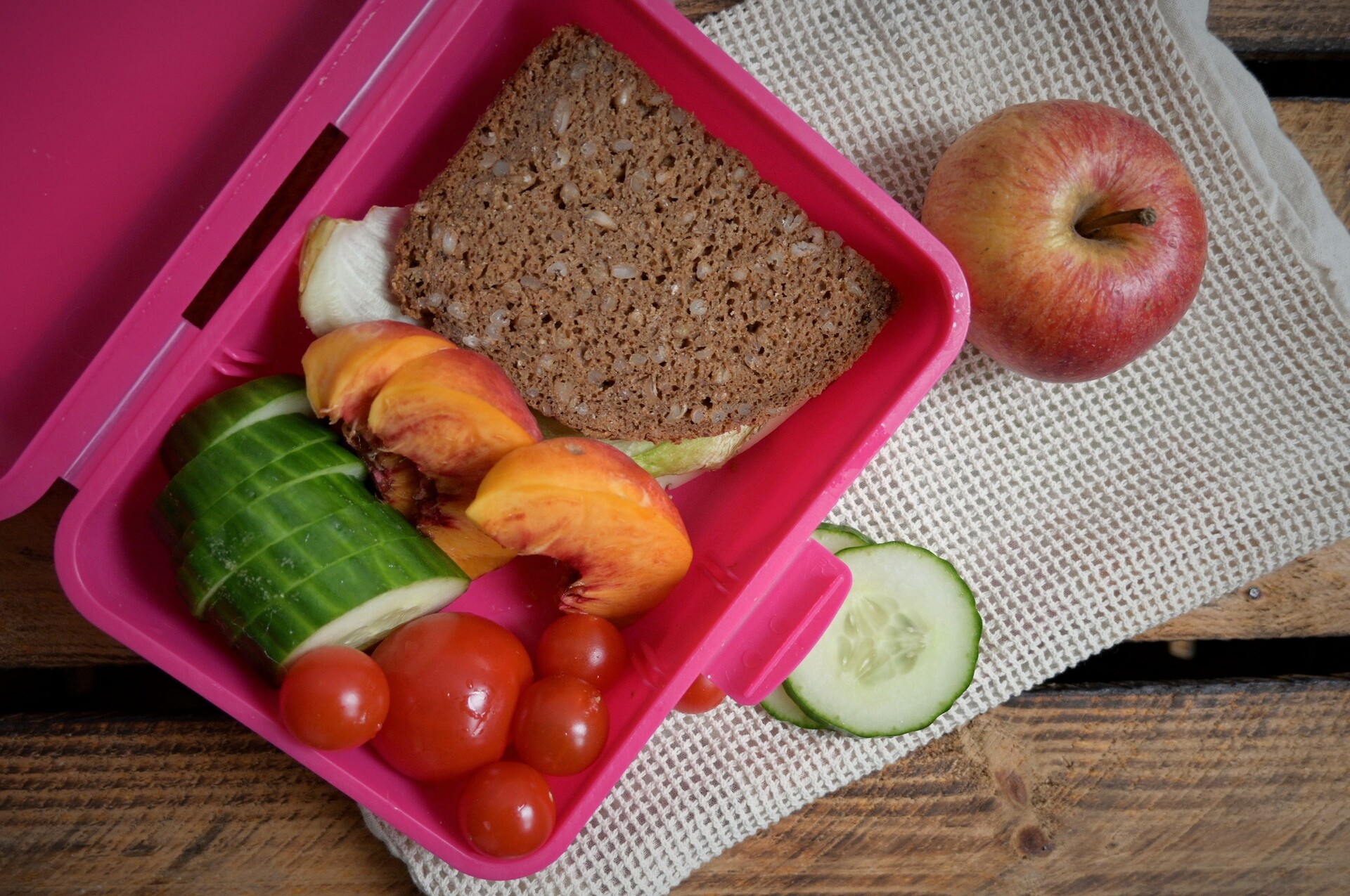 Der Inhalt der Brotdose ist abhängig davon, ob ein Verpflegungsangebot in der Kita oder Schule besteht. Kinder, die in der Kita gemeinsam frühstücken, brauchen zum Beispiel weniger Proviant. Je nachdem, was die Einrichtung anbietet, können Eltern die Frühstücksboxen mit weiteren Bausteinen ergänzen. Gibt es beispielsweise beim Schulfrühstück keine Milchprodukte, ergänzt ein Joghurt von zuhause die Versorgung. Auch bei der Auswahl der Lebensmittel für die Brotdose sollten Kinder mitentscheiden. Statt zum „Gemüseschnitzer“ oder „Brotausstecher“ zu werden, gehören ganz normale Lebensmittel in die Box. Obst und Gemüse einfach kleinschneiden und ggf. entkernen. Die Schale, z.B. von Gurken oder Äpfeln darf mitgegessen werden. Eine saisonale und regionale Auswahl an Gemüse und Obst garantiert Abwechslung.